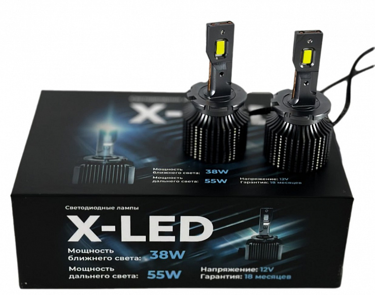 Светодиодные лампы D4S,D3S,D2S,D1S X-LED обеспечивают ослепительно яркое освещение вашего пути, благодаря использованию современных светодиодных технологий. Лампы D4S,D3S,D2S,D1S X-LED имеют функцию ближнего и дальнего света. Мощность ближнего света составляет - 38W, а мощность дальнего света - 55W.
