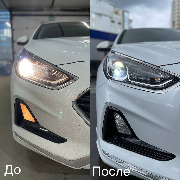 Замена галогенных линз на Bi-Led, установка диодных ламп в секцию ДХО. Полировка фар