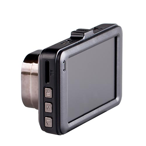 Внешний вид видеорегистратора отличают лаконичный дизайн, четкие геометрические формы и матовое покрытие, на котором не остается следов пальцев. Передняя панель изготовлена из прочного металла. Управление регистратором осуществляется с помощью кнопок, расположенных на боковых панелях устройства.