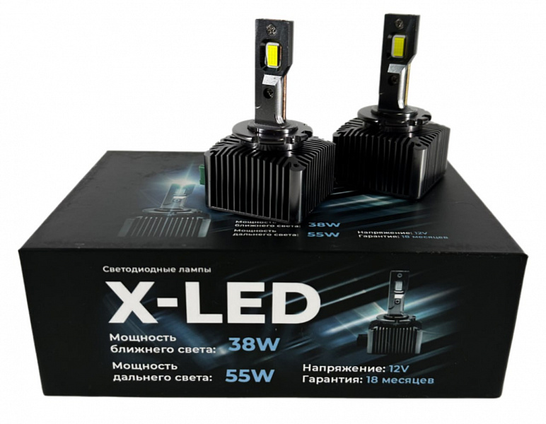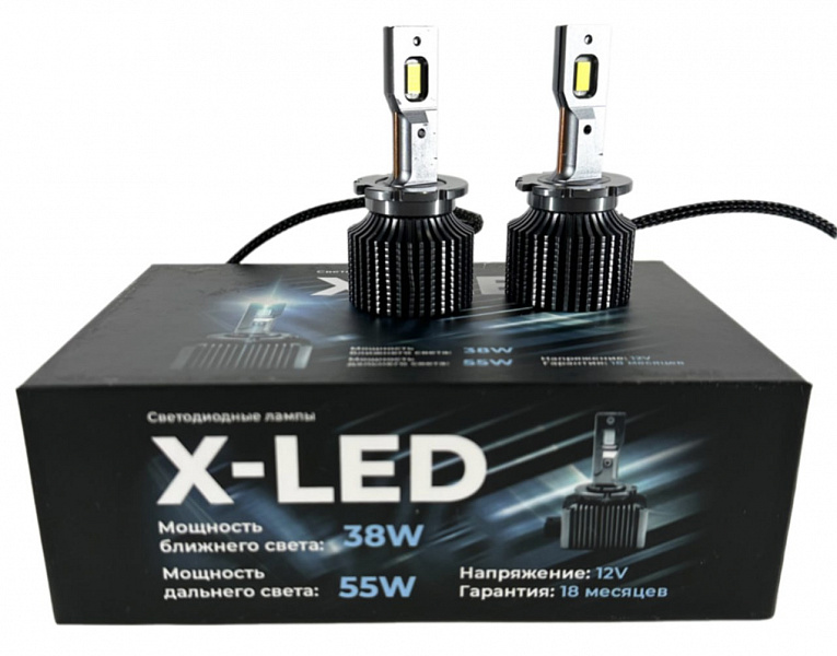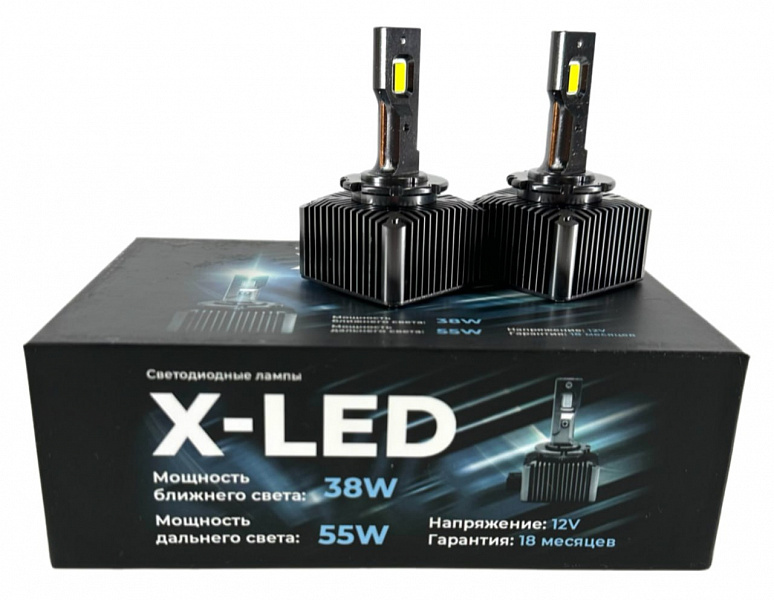 Светодиодные лампы D4S,D3S,D2S,D1S X-LED обеспечивают ослепительно яркое освещение вашего пути, благодаря использованию современных светодиодных технологий. Лампы D4S,D3S,D2S,D1S X-LED имеют функцию ближнего и дальнего света. Мощность ближнего света составляет - 38W, а мощность дальнего света - 55W.